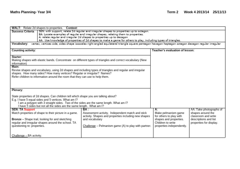 activity. Shapes and properties including new shapes for others to play with classroom and write