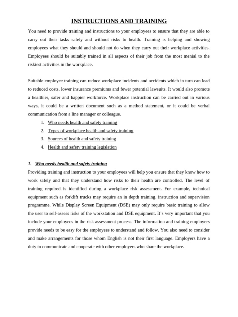 a healthier, safer and happier workforce. Workplace instruction can be carried out in various