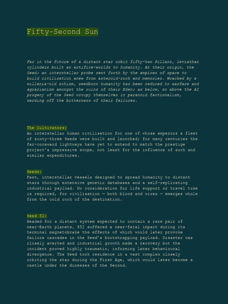 progeny of the Seed occupy themselves in paranoid factionalism,