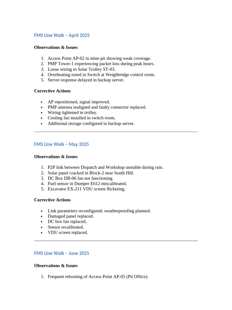 1. P2P link between Dispatch and Workshop unstable during rain.