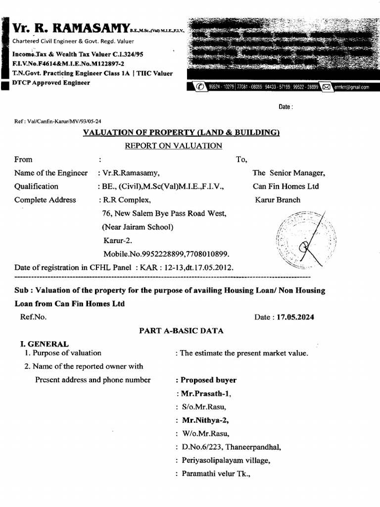 Qualification : BE., (Civil),M.Sc(Val)M.I.E.,F.I.V., Can Fin Homes Ltd