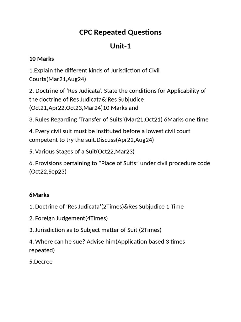 CPC Repeated Questions