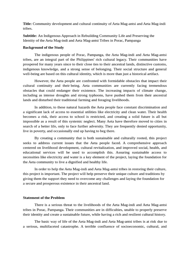 Title: Community development and cultural continuity of Aeta Mag-antsi and Aeta Mag-indi