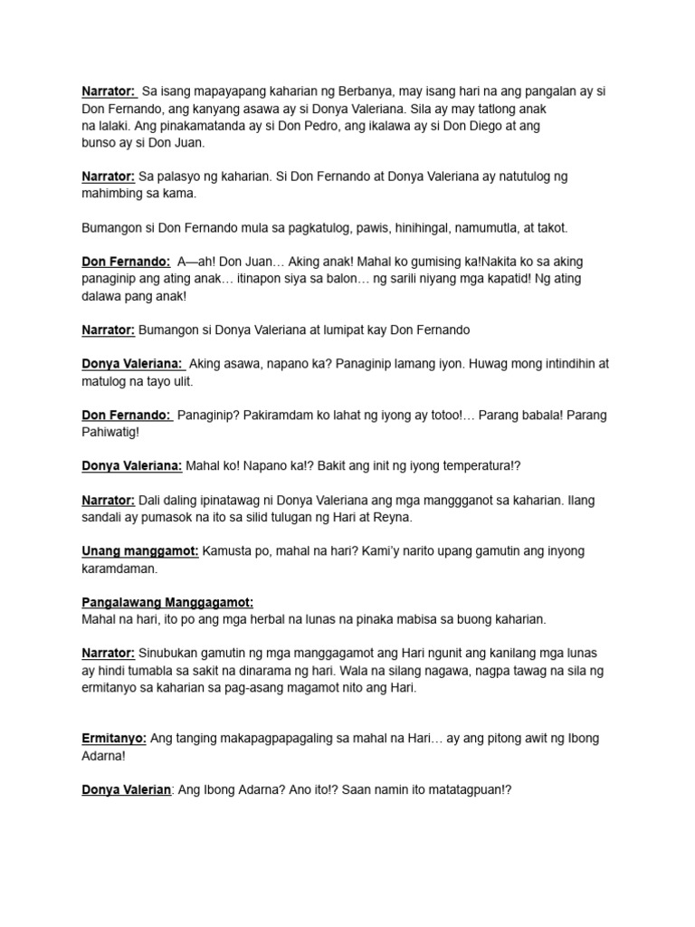 Narrator: Sa isang mapayapang kaharian ng Berbanya, may isang hari na ang pangalan ay si