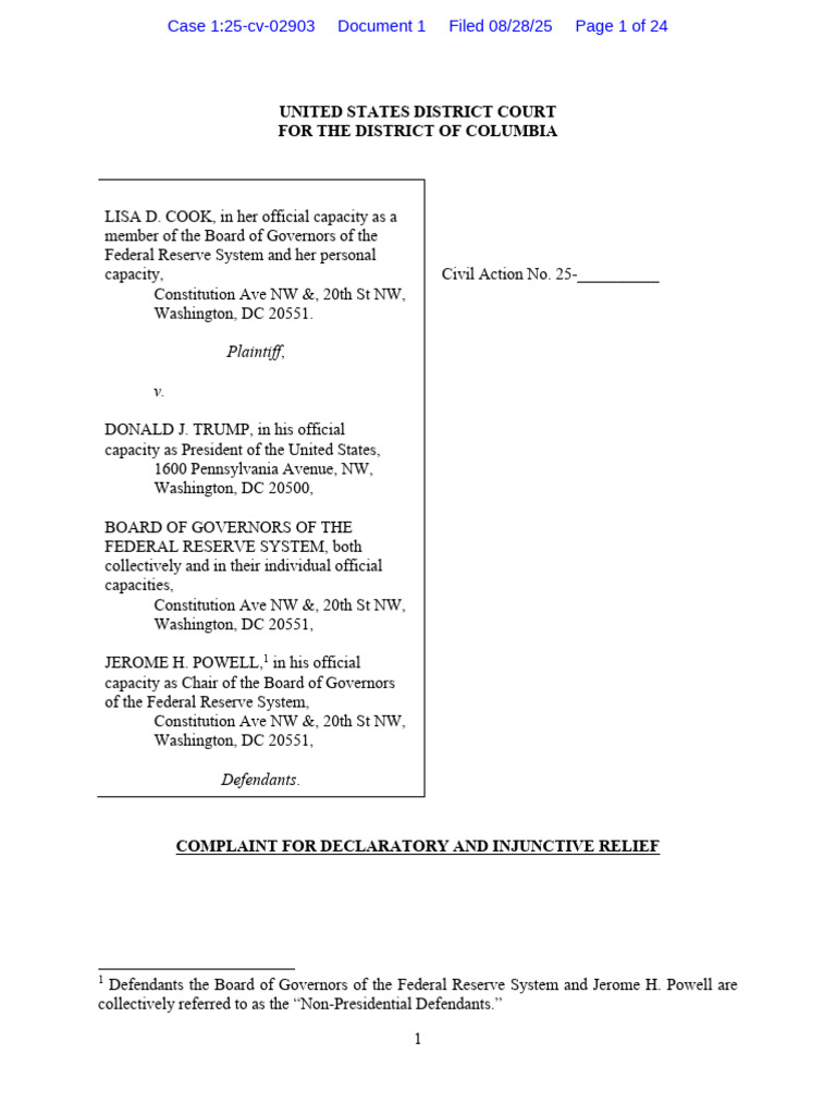 CNBC (Aug. 26, 2025), https://www.cnbc.com/2025/08/26/trump-fed-cook-respond-court.html.