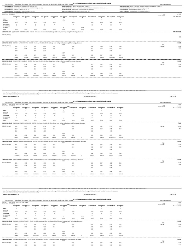 24051701242109 DHEERAJ PADMAKAR BUNDHE 05170 - Hindi Seva Mandal's Shri Sant Gadge Baba College of Engineering & Technology, Bhusawal FAIL