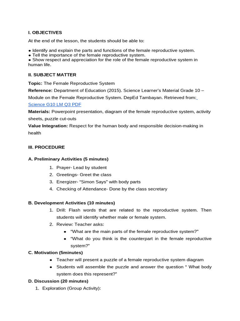 Module on the Female Reproductive System. DepEd Tambayan. Retrieved from: