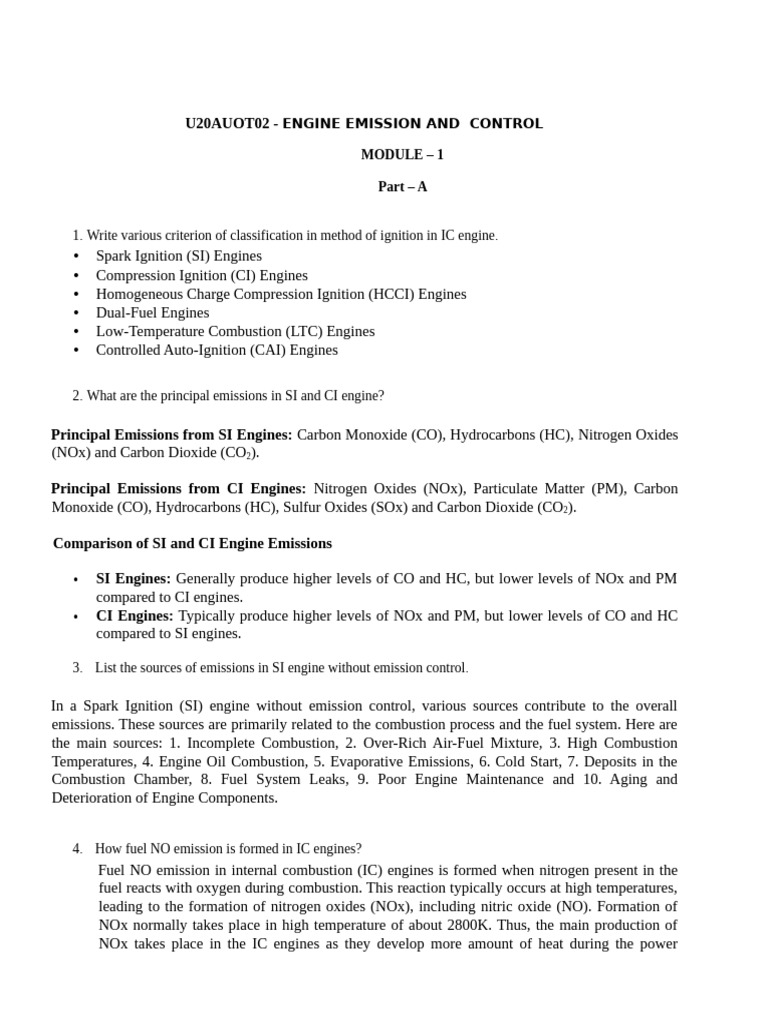 • CI Engines: Typically produce higher levels of NOx and PM, but lower levels of CO and HC