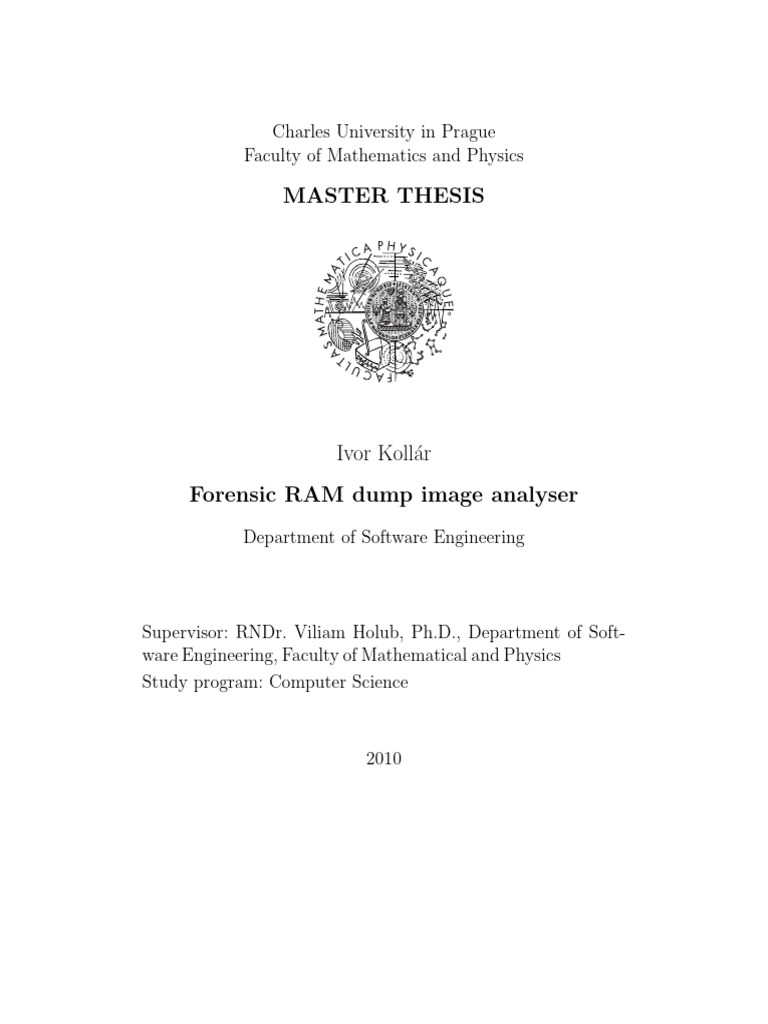 work is to develop an automatic analyser of physical memory dumps retriev-
