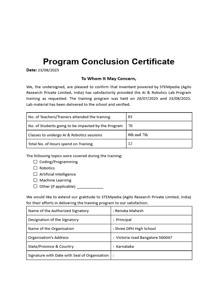 Research Private Limited, India) has satisfactorily provided the AI & Robotics Lab Program