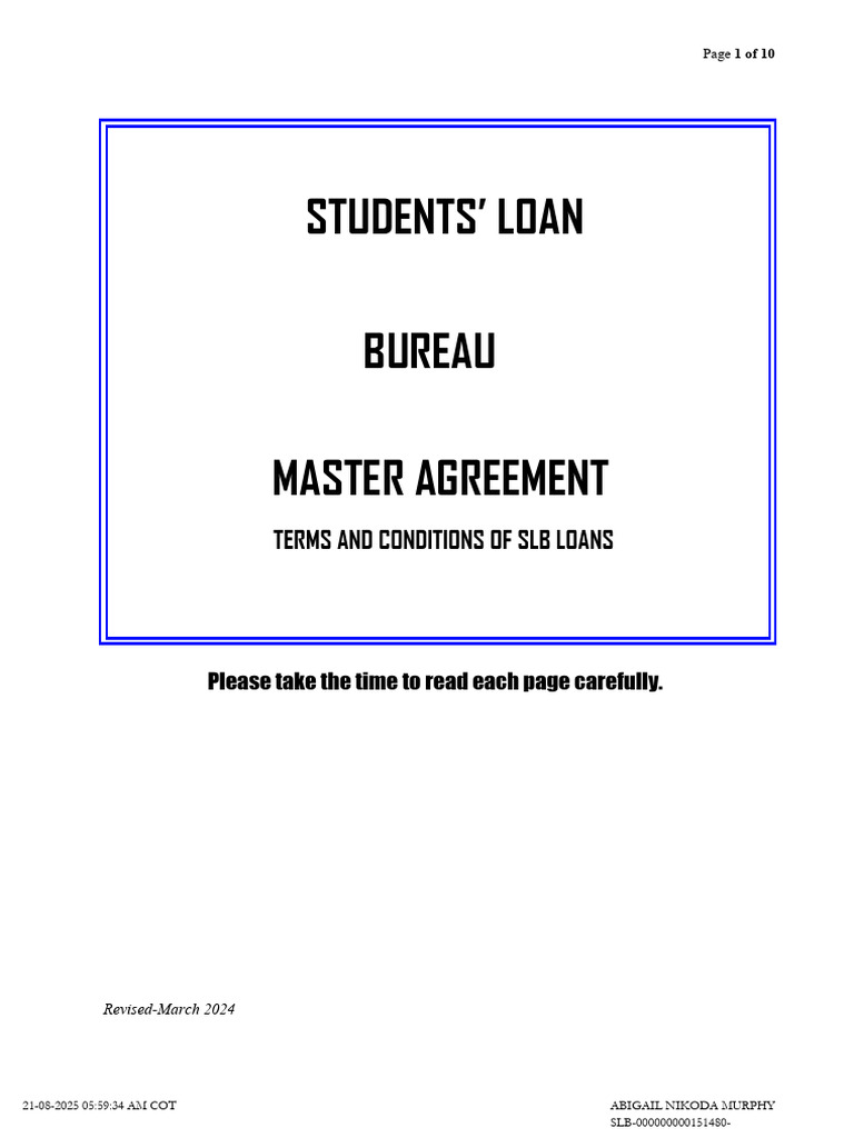 funding and the policies of the Students’ Loan Bureau regarding the Borrower’s course of study.
