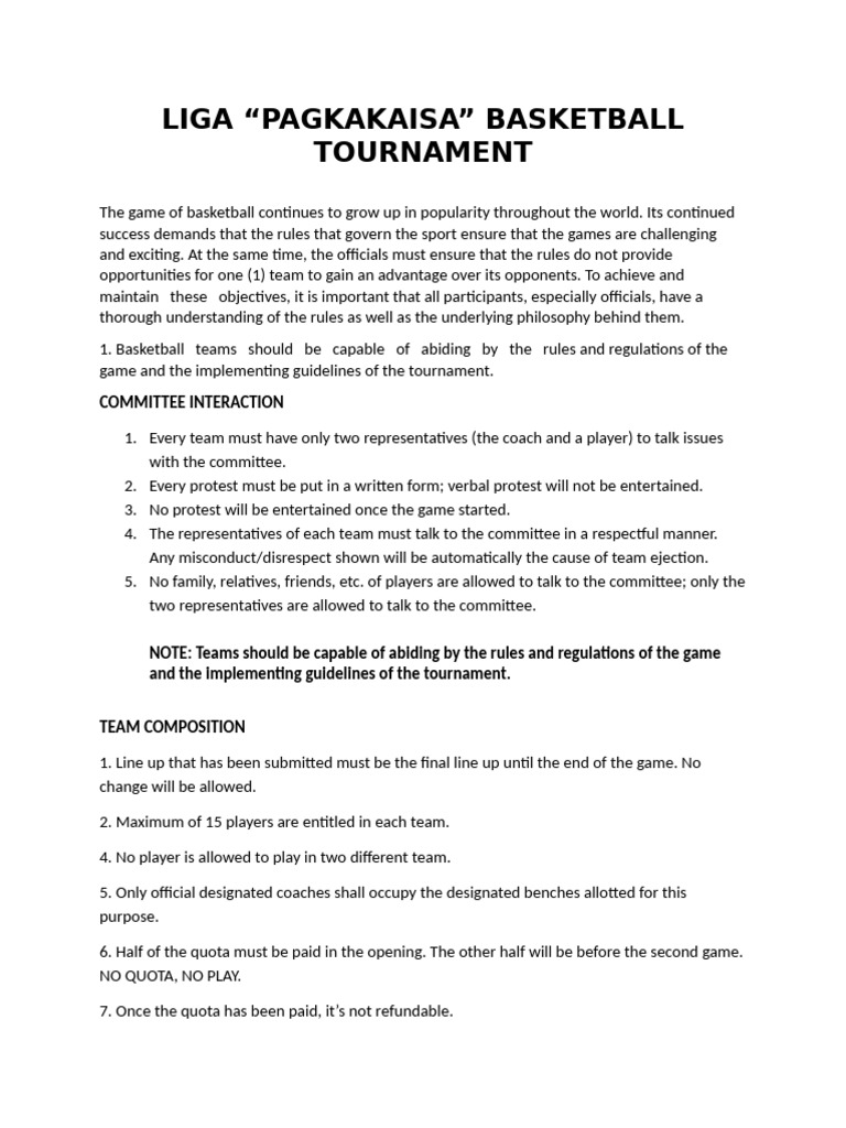 1. Basketball teams should be capable of abiding by the rules and regulations of the