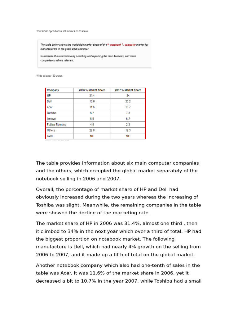 table was Acer. It was 11.6% of the market share in 2006, yet it