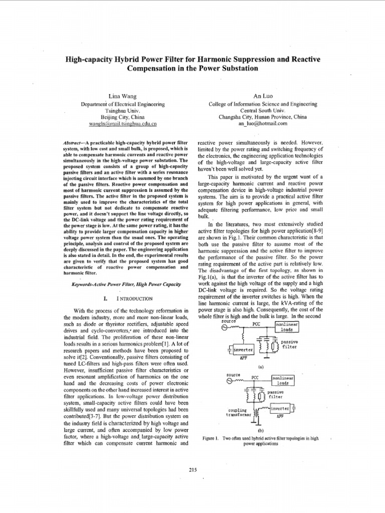 Abssanct-A practicable high-capacity hybrid power filter reactive power simultaneously is needed. However,