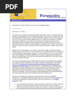 In one PARCC state, the CCSS implementation effort is set in the broader context of a goal to improve 3rd grade literacy. Adopting the CCSS, creating model curricula and launching professional development on these curricula are three of about a dozen projects that are meant to contribute to this goal. To track progress, the state has developed a feedback loop consisting of a range of evidence: It has defined a student outcome goal of increasing the number of students who score proficient on the 3rd grade reading assessment by around 14,000 by the 201415 school year. It has defined several leading indicators. (One related to CCSS implementation, for example, is the retention rate of teachers with fewer than five years of service in grades K3.) It has created a project charter with milestones and deliverables for each of the projects, with an explicit estimate of the contribution that successful completion of each project will make toward the student outcome goal. The strategic implementation team wants to regularly review progress and the likelihood that its goals would be delivered in a systematic and regular way. To do this, it instituted a quarterly review meeting that includes the senior official responsible for the goal, the commissioner and related project leaders. The challenge is to ensure a consistent discussion at each meeting, despite the fact that much of the data from the aforementioned feedback loops are infrequently or irregularly available. To solve this problem, the team relied on an assessment framework a qualitative rubric that asks several rigorous questions about each component of the plan to determine the likelihood that the component will contribute its share to the desired outcome. The qualitative judgments are combined with what data are available to render an overall judgment: (on track), (mixed), (problematic) and (highly problematic).