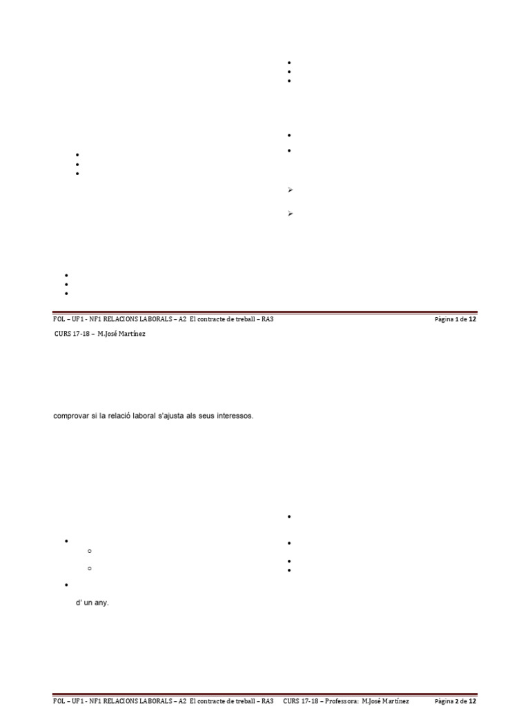 FOL – UF1 - NF1 RELACIONS LABORALS – A2 El contracte de treball – RA3 CURS 17-18 – Professora: [Link]é Martínez Pàgina 2 de 12