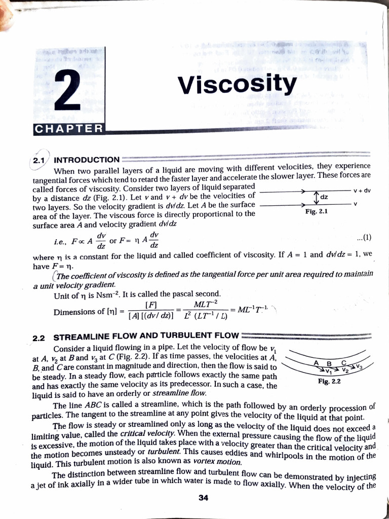 two layers. So the velocity gradient is dldz. Let Abe the surface Fig. 2.1