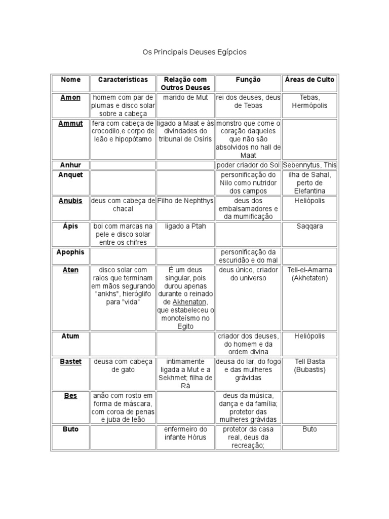 Os Principais Deuses Egípcios