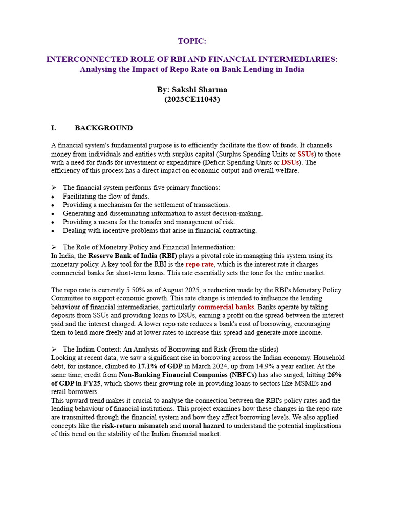 lending behaviour of financial institutions. This project examines how these changes in the repo rate