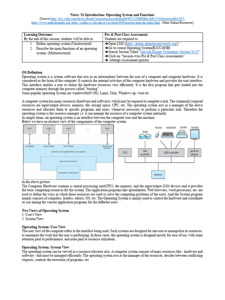 Operating system is a system software that acts as an intermediary between the user of a computer and computer hardware. It is