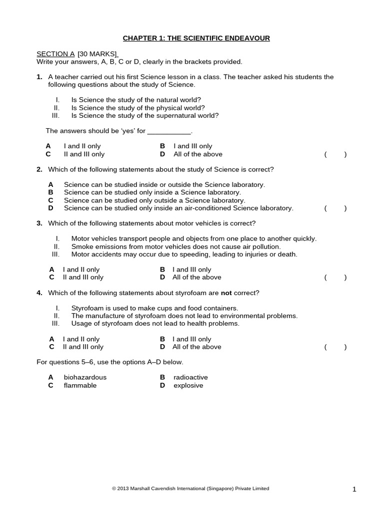 1. A teacher carried out his first Science lesson in a class. The teacher asked his students the