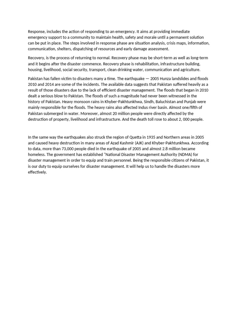 disaster management in order to equip and train personnel. Being the responsible citizens of Pakistan, it