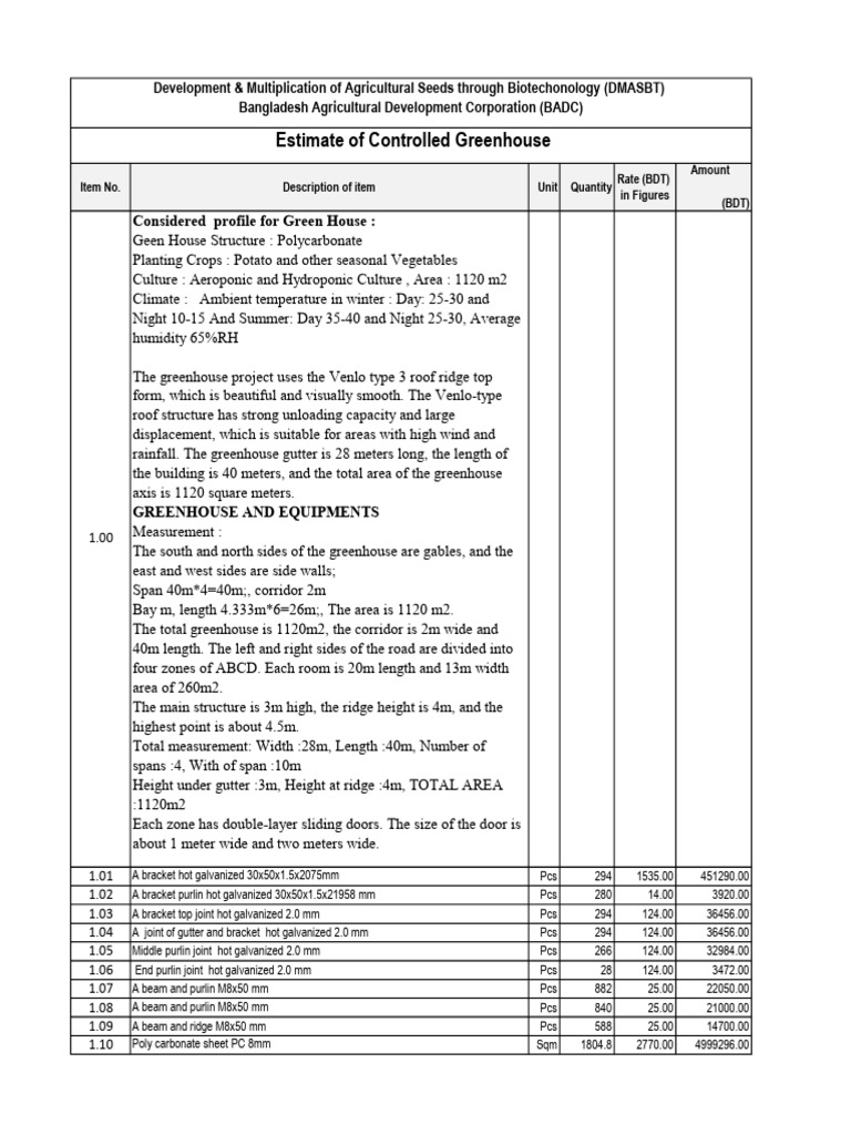 Estimate of Controlled Greenhouse