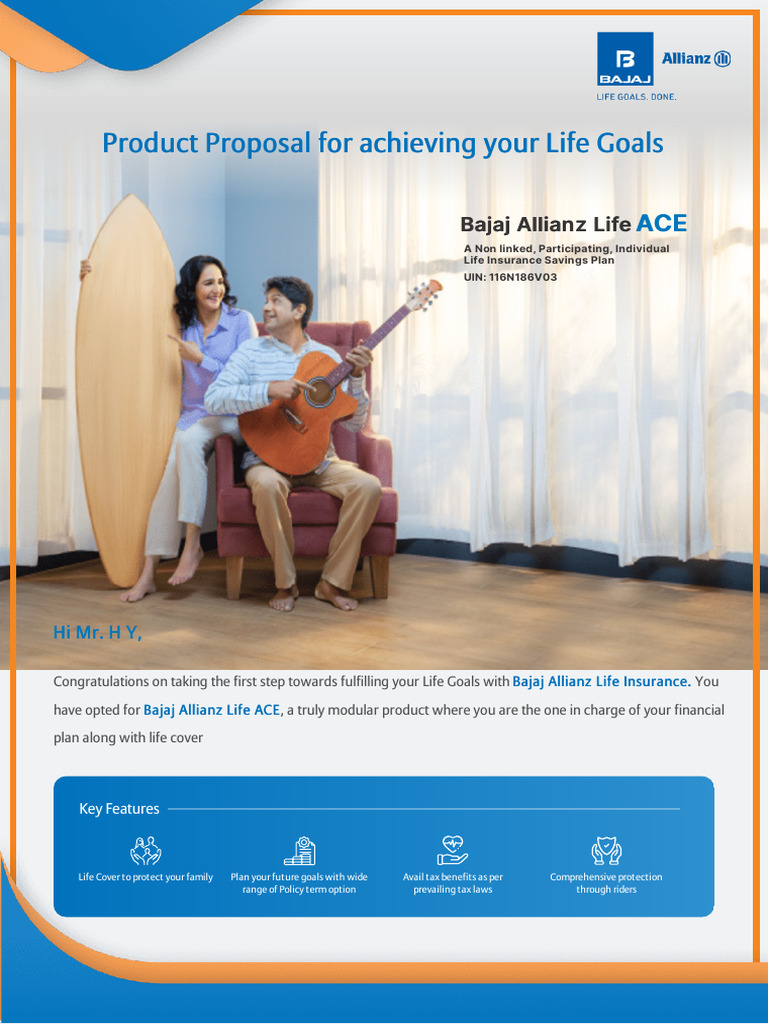 Name of the Prospect/ Policyholder: HY Name of the Product: Bajaj Allianz Life ACE