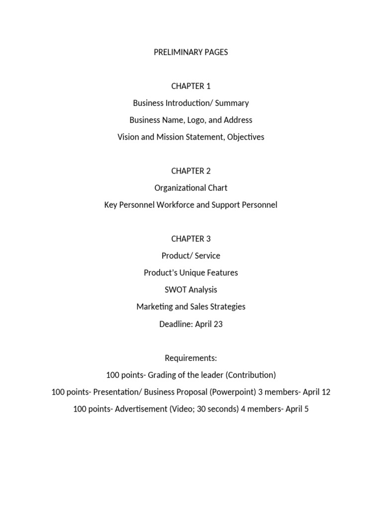 100 points- Presentation/ Business Proposal (Powerpoint) 3 members- April 12