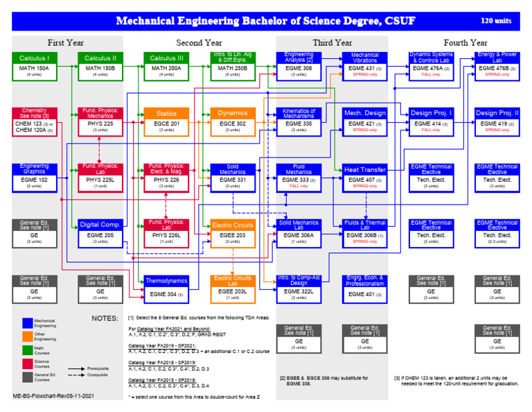 Mechanical Engineering Bachelor of Science Degree, CSUF 120 units