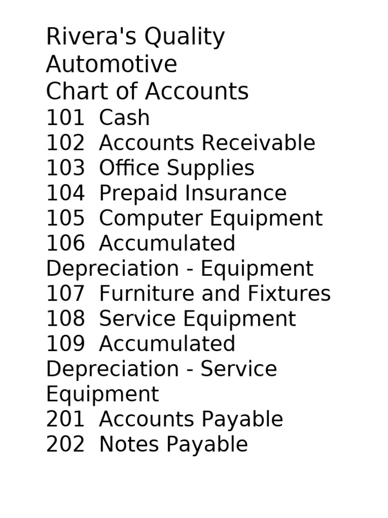 On December 1, Mark Rivera began an AUTO REPAIR SHOP, Rivera’s Quality Automotive. The following