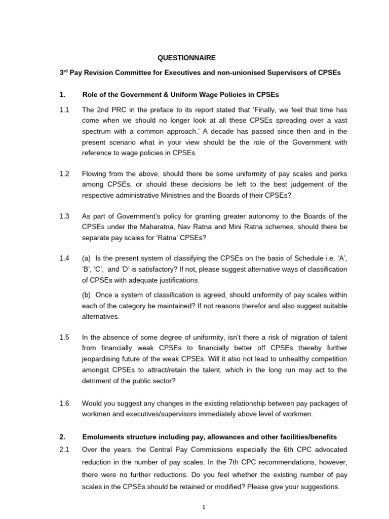 1. Role of the Government & Uniform Wage Policies in CPSEs
