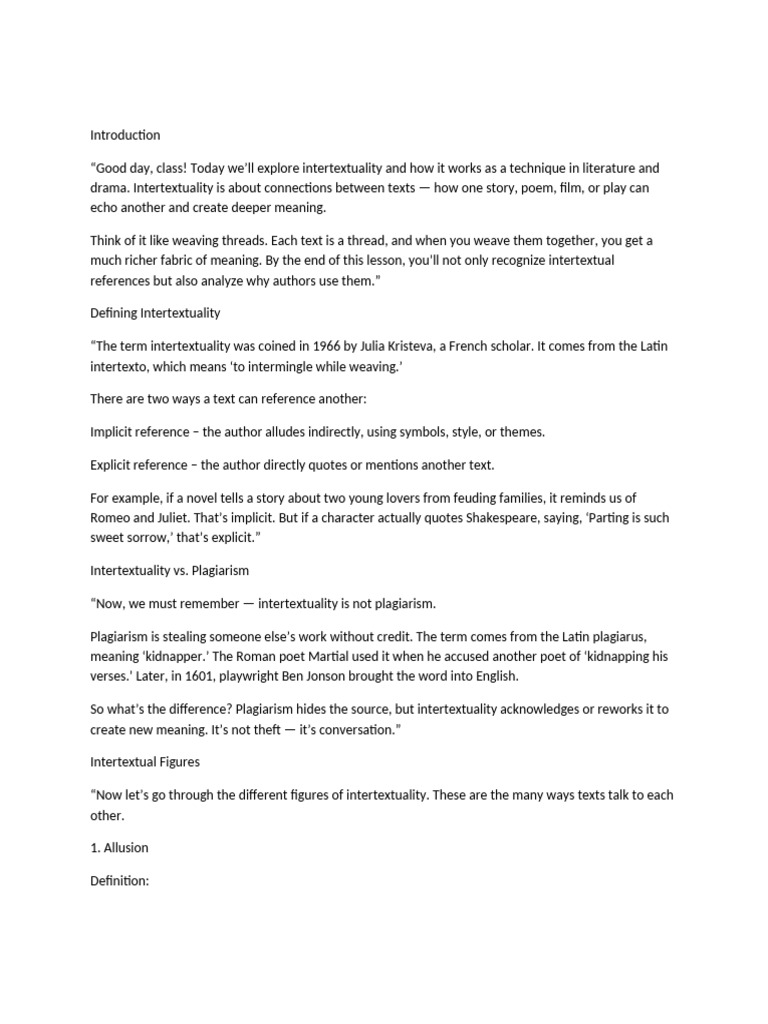“Good day, class! Today we’ll explore intertextuality and how it works as a technique in literature and