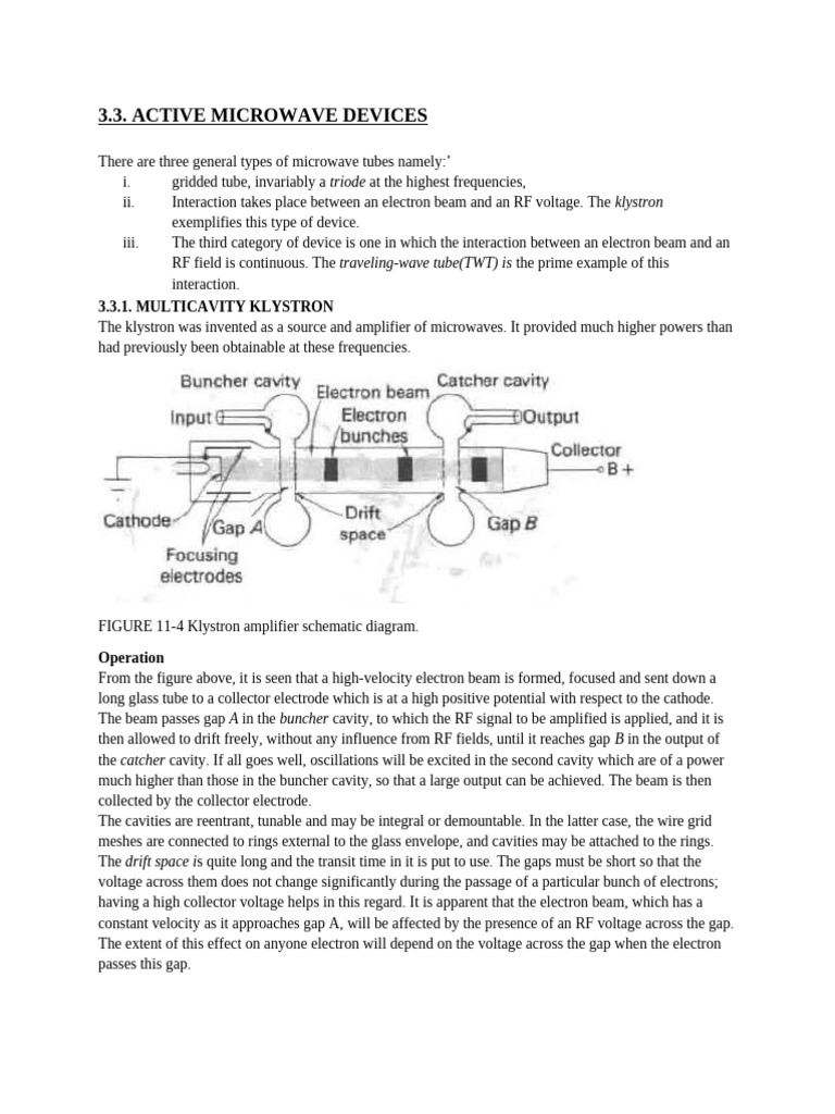 ii. Interaction takes place between an electron beam and an RF voltage. The klystron