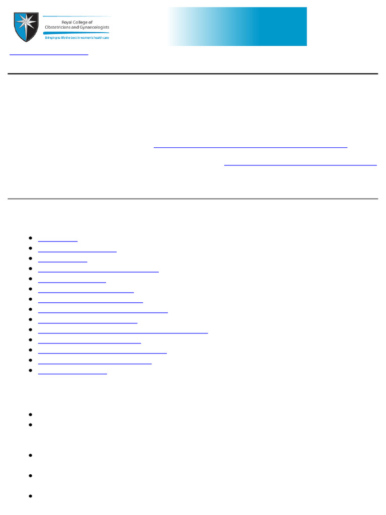 The RCOG consents to the reproduction of this document providing full acknowledgement is made. The