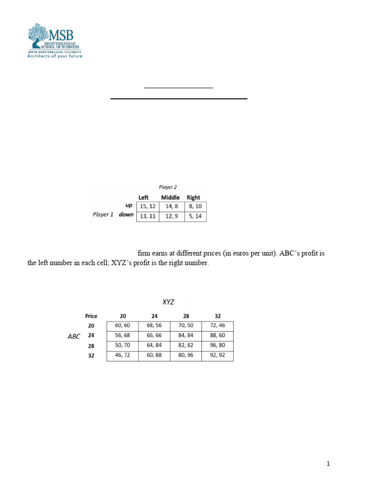 ABC and XYZ are the only two firms selling gadgets in Europe. The following table shows the
