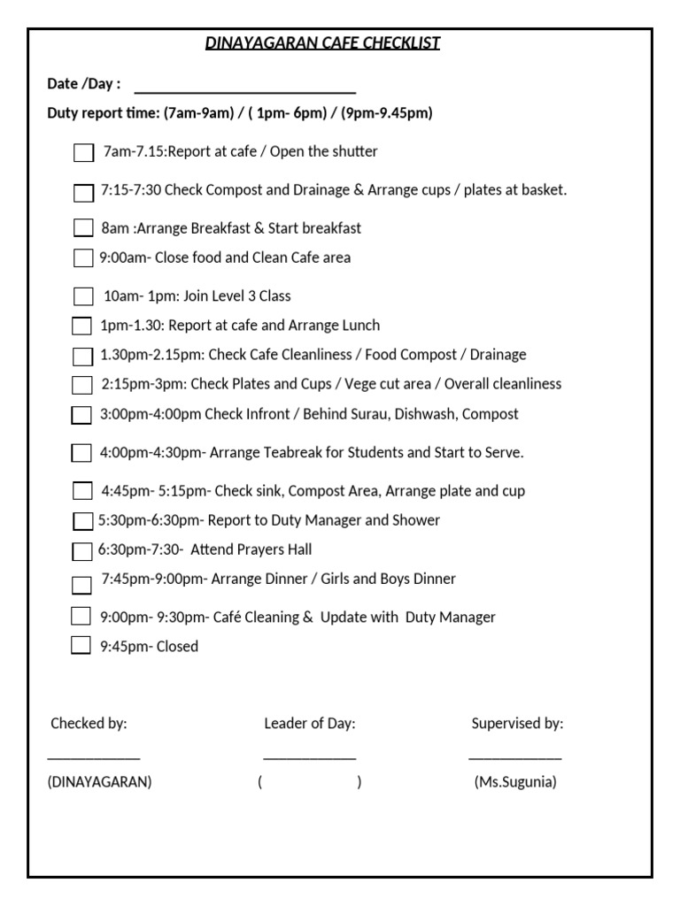 DINAYAGARAN CAFE CHECKLIST