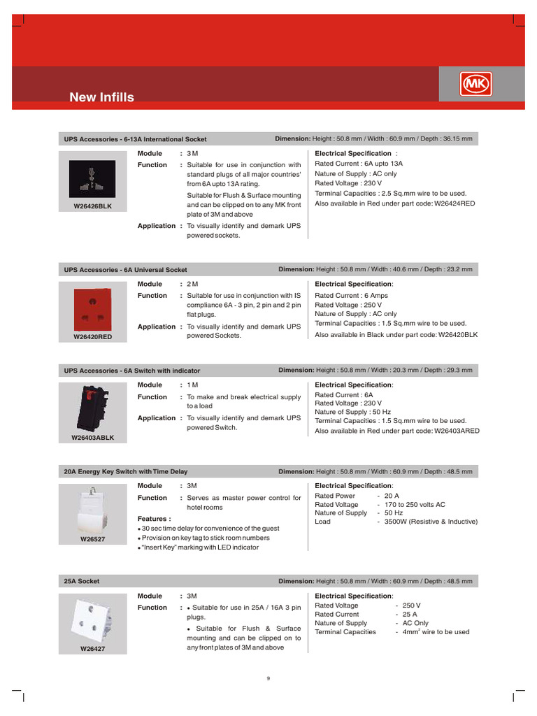 from 6A upto 13A rating. Rated Voltage : 230 V