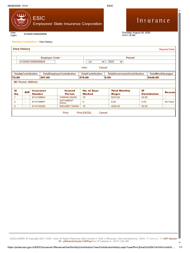 https://portal.esic.gov.in/ESICInsurance1/RevenueOne/MonthlyContribution/ViewContributionHistory.aspx?userPk=LEma2UzG0kYxhXWmVdcb%… 1/1