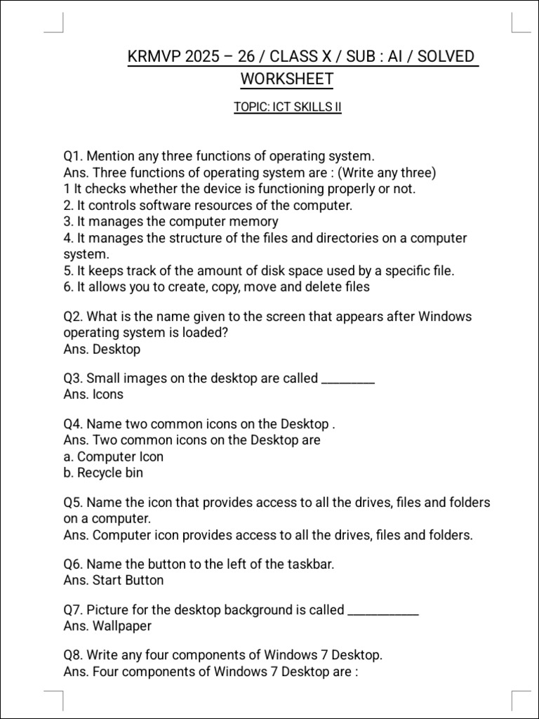 KRMVP 2025 – 26 / CLASS X / SUB : AI / SOLVED