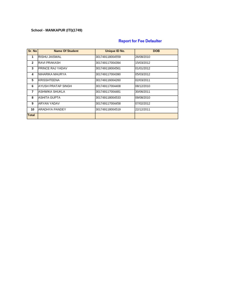 Report for Fee Defaulter
