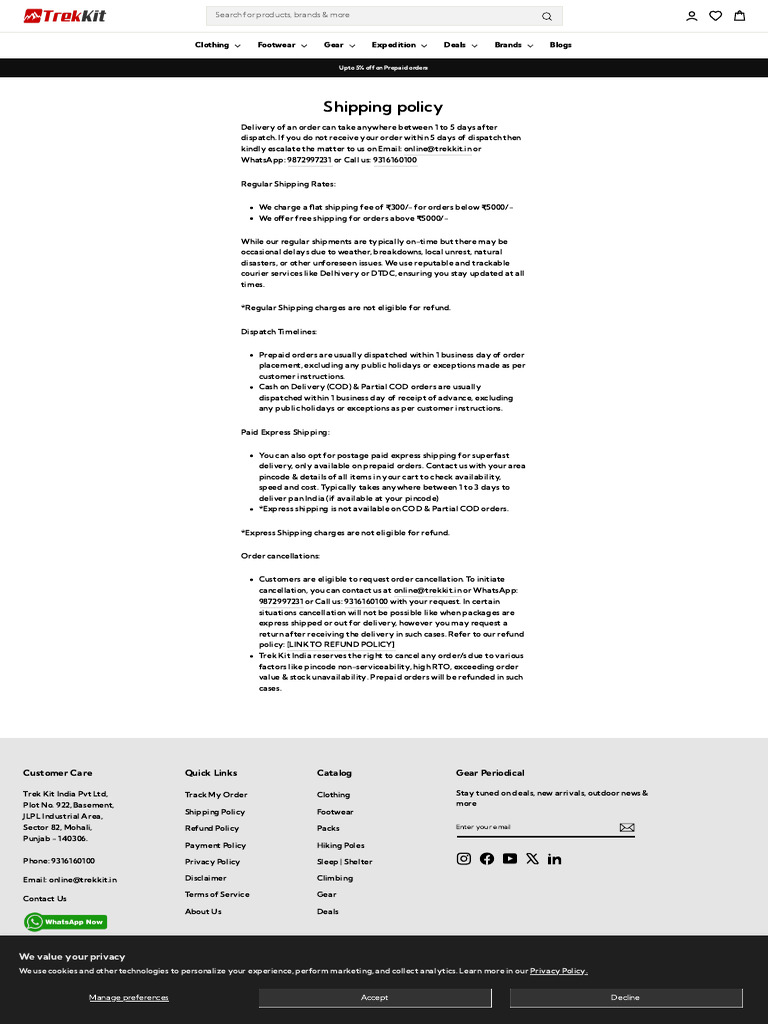 Trek Kit India Pvt Ltd, Track My Order Clothing Stay tuned on deals, new arrivals, outdoor news &