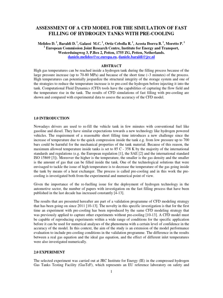 10. Heitsch M, Baraldi D, Moretto P. Numerical investigations on the fast filling of hydrogen tanks.