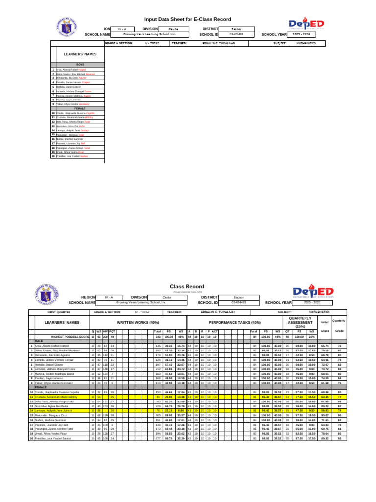 GRADE & SECTION: IV - TOPAZ SCHOOL YEAR: 2025 - 2026