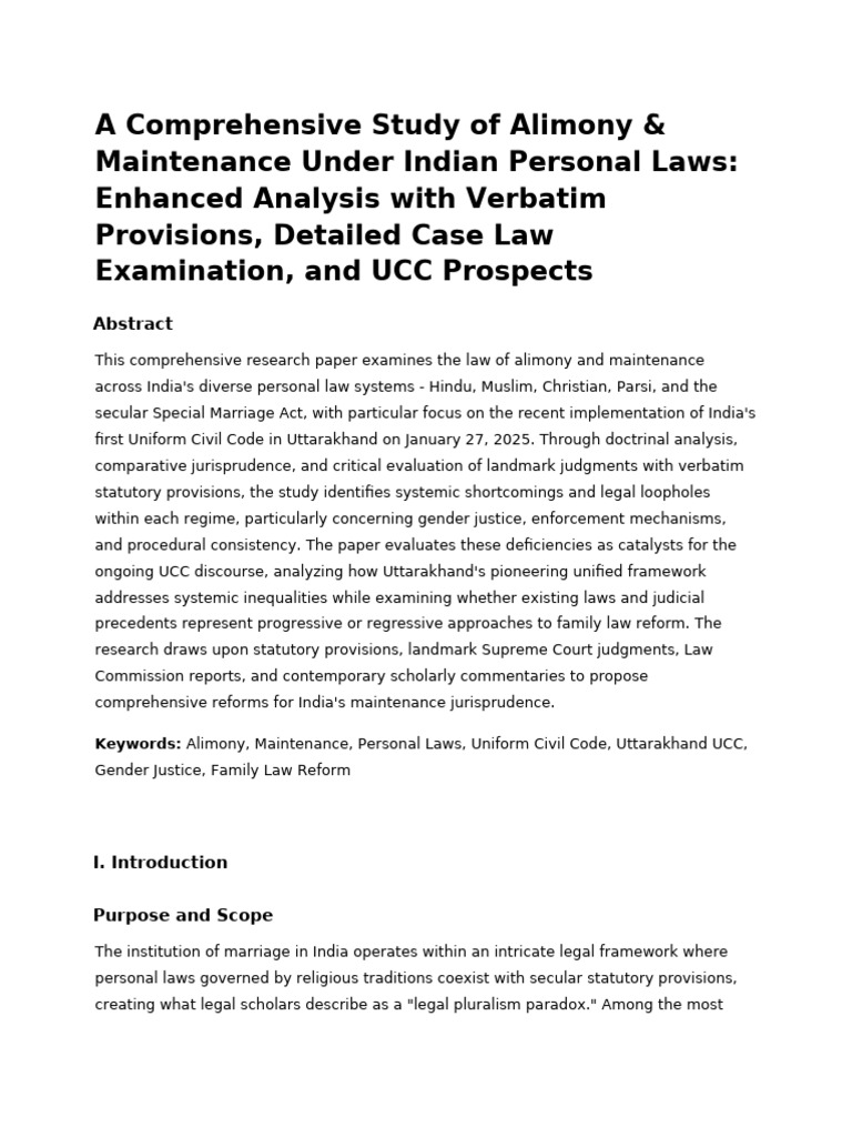 This comprehensive research paper examines the law of alimony and maintenance