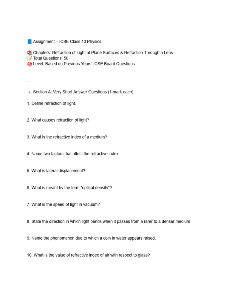 📚 Chapters: Refraction of Light at Plane Surfaces & Refraction Through a Lens