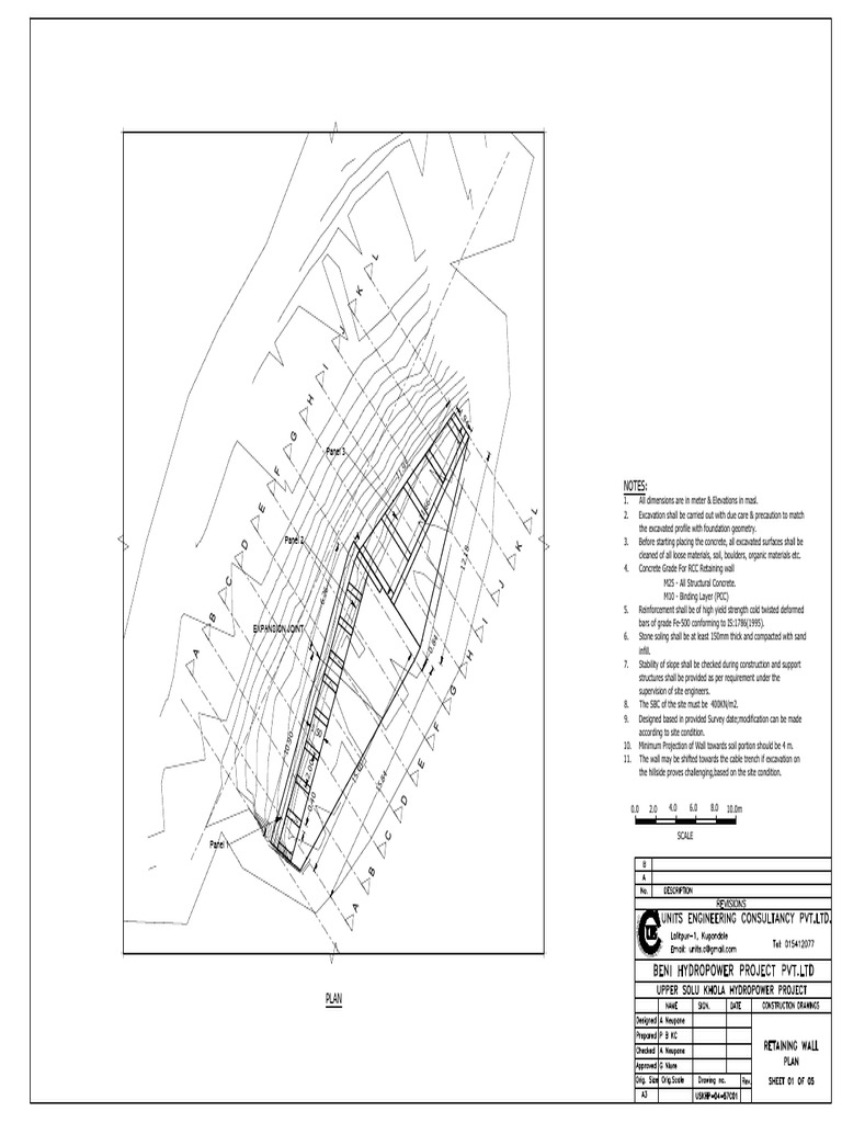 1. All dimensions are in meter & Elevations in masl.