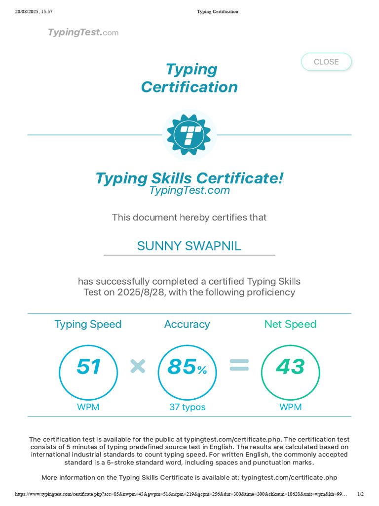 https://www.typingtest.com/certificate.php?acc=85&nwpm=43&gwpm=51&ncpm=219&gcpm=256&dur=300&time=300&chksum=18628&unit=wpm&kh=99… 2/2