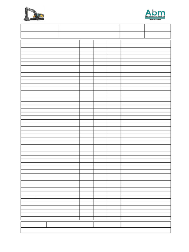 HYDRAULIC EXCAVATOR PRE- USE CHECKLIST
