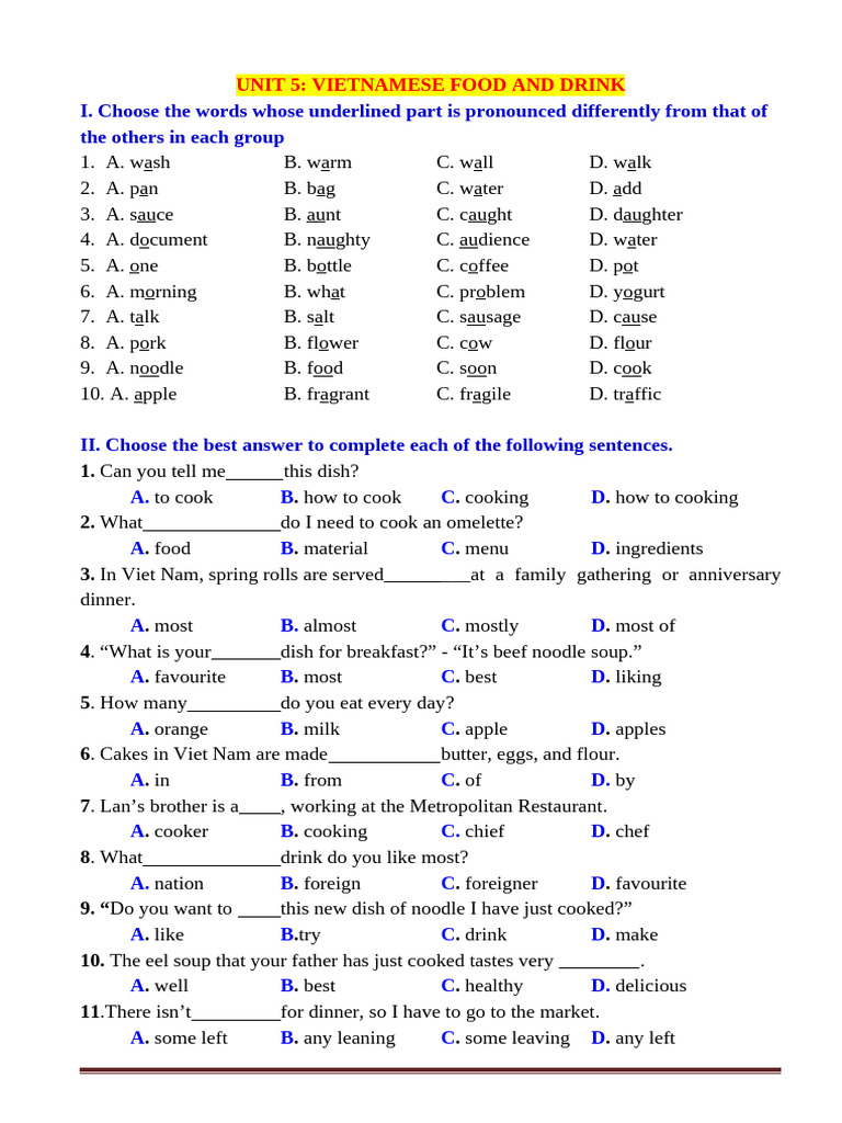 UNIT 5: VIETNAMESE FOOD AND DRINK
